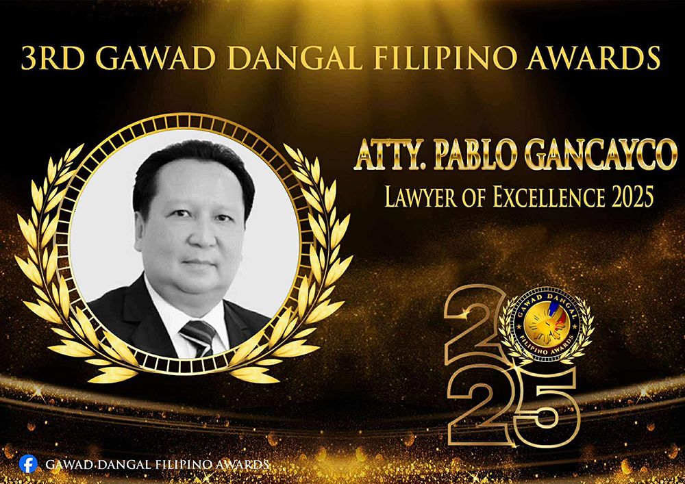 The Gancayco Balasbas & Associates Law Offices proudly congratulates our Senior Partner, Atty. Pablo Gancayco, for being recognized as Lawyer of Excellence 2025 by the Gawad Dangal (Award of Honor) Filipino Awards.